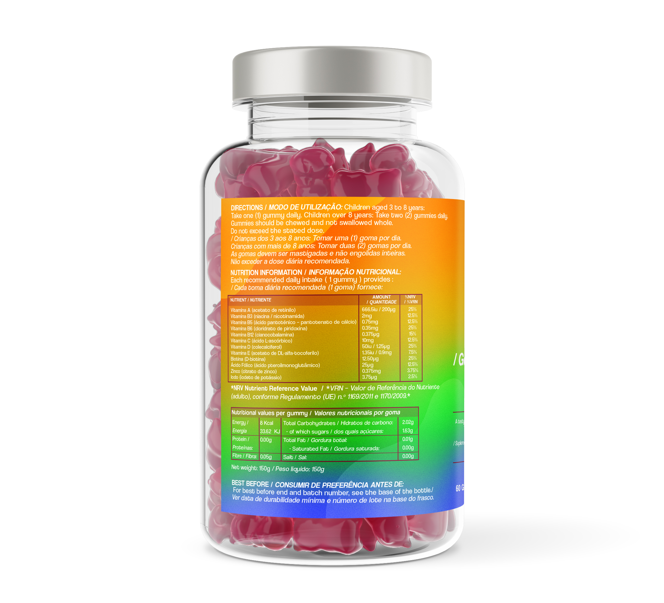 Além de contribuírem para o funcionamento normal do sistema nervoso e psicológico, também auxiliam no funcionamento normal do sistema imunológico e reduzem o cansaço e a fadiga. Perfeitas para crianças que não gostam de tomar comprimidos, essas gomas saborosas são uma ótima maneira de os pequenos ingerirem suas multivitaminas e minerais.